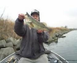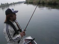 早速ボートを走らせ下流域のテトラを釣って行くことに。水温は11度。まずは二人でダイビングミノーを1時間ほど流すがバイトは無いようだ。