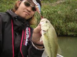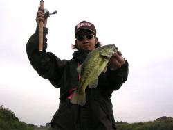 バッテリーも次第に無くなりはんぶん漂流状態になりながら釣れたバス。お気に入り『ディープタイニーN』