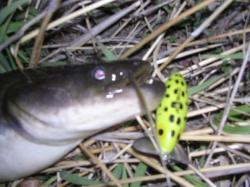 ルアーはジタバグ3/8オンス(バーブレスフックに交換済み)